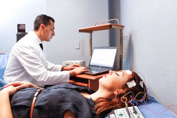 En el momento de la prueba, el paciente será sentado en una silla y se le colocarán electrodos adhesivos en todo el cuero cabelludo. Estos tendrán entre 16 y 25 mm, por lo cual cubrirán toda la cabeza del paciente.